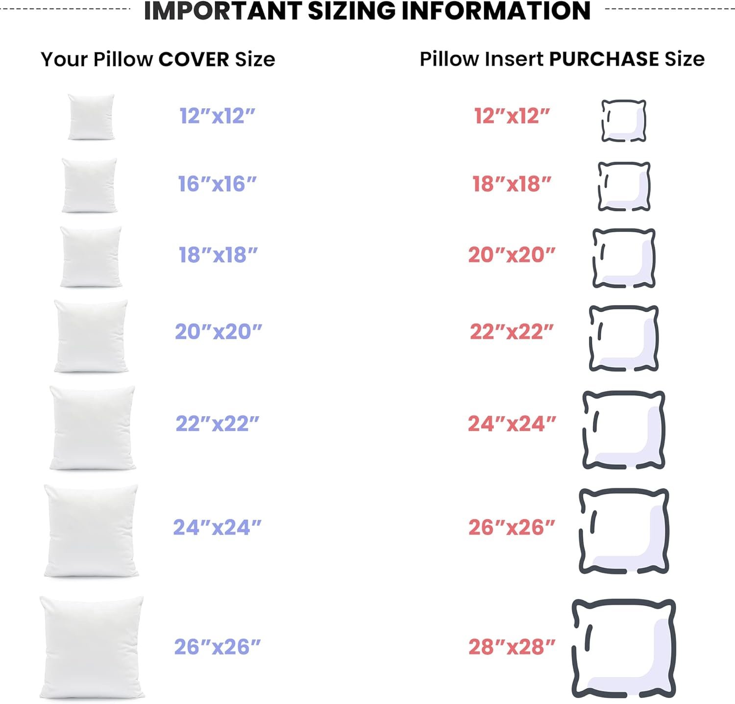 Elevate your indoor space with our square pillow filler in 18×18-inch seam-to-seam measurements. Spot wash recommended