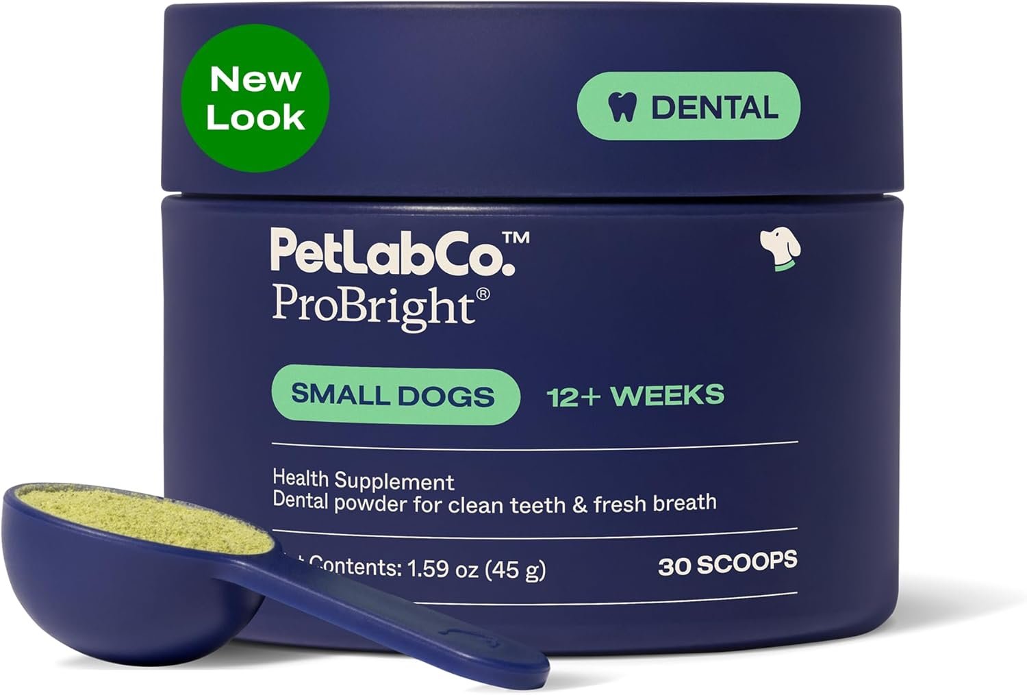 PetLab Co. ProBright Dental Powder – Dog Breath Freshener – Teeth Cleaning Made Easy – Targets Tartar & Bad Breath – Formulated for Small Dogs – Packaging May Vary