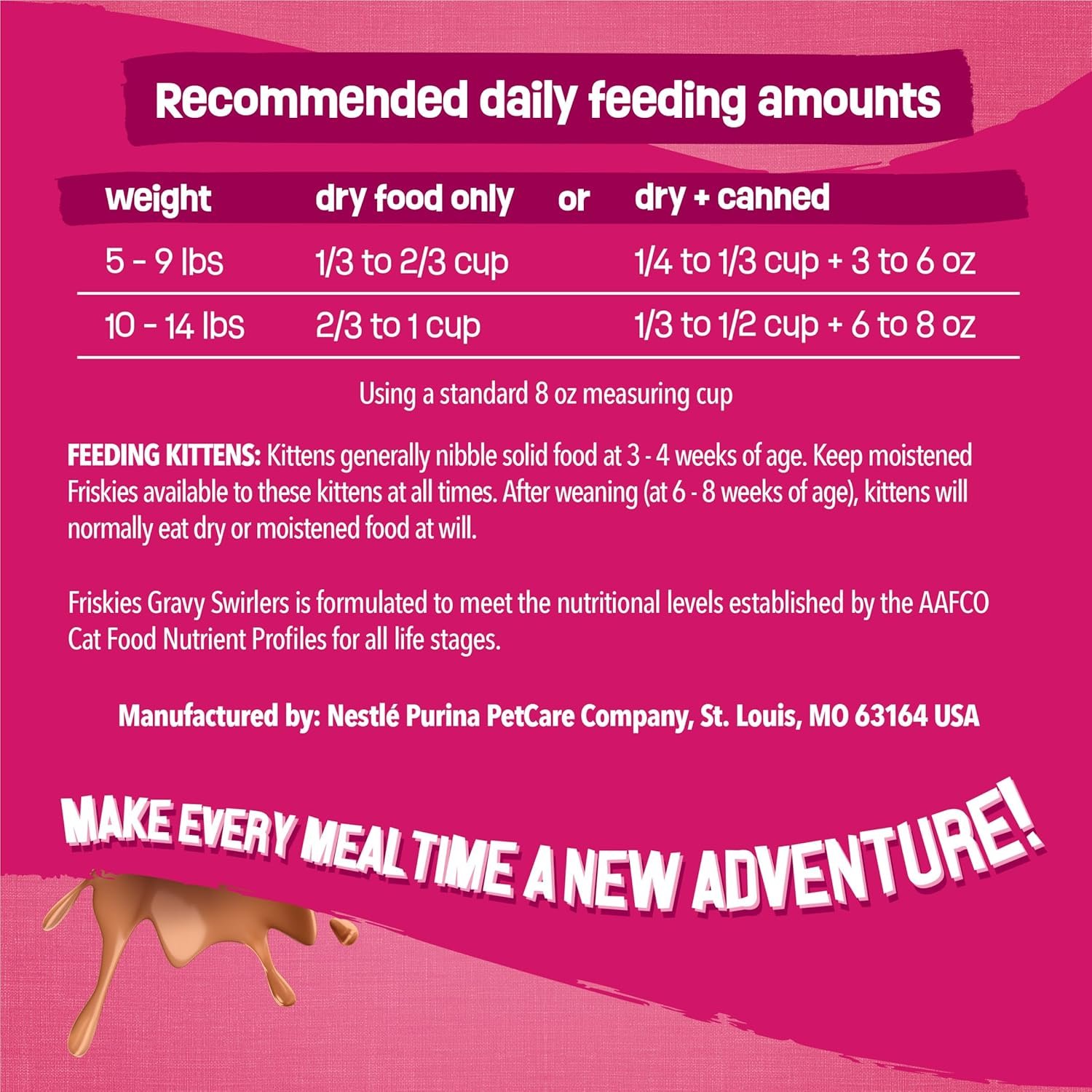 • Friskies cat food backed by a company committed to sustainable practices and checked for quality and safety to provide added peace of mind