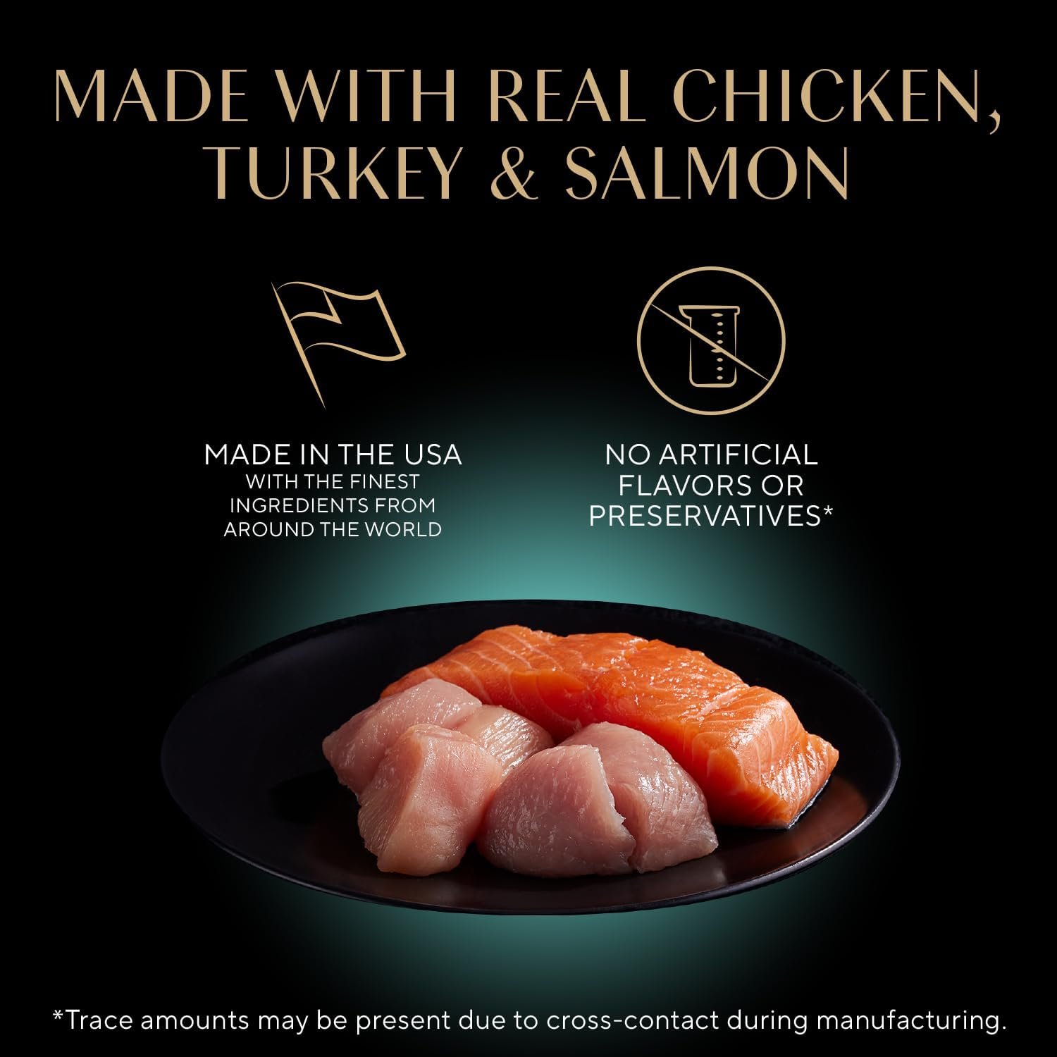 - Perfect For Picky Eaters: Sheba cat food made with real, succulent cuts of chicken, salmon, and turkey are covered in delicious gravy for a protein-rich meal with irresistible flavors in a variety of textures
